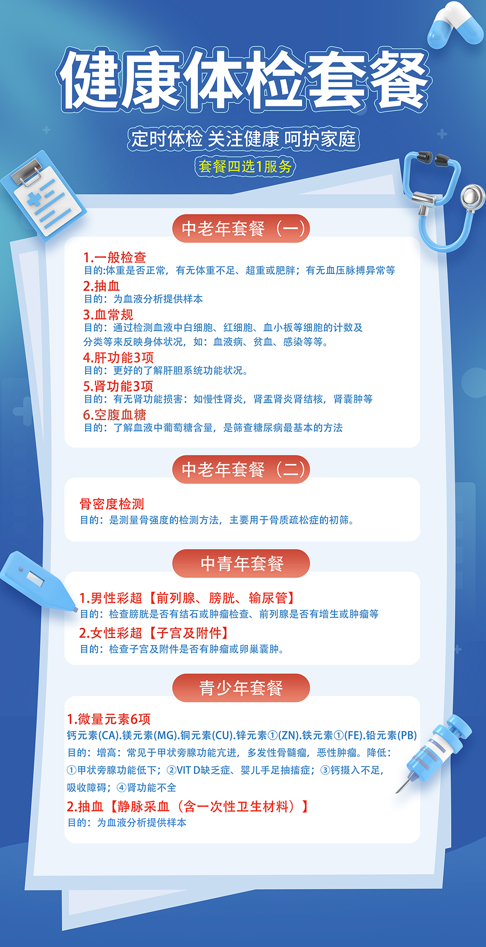 一、送3份 99 元家庭基础健康体检套餐包(每人1次,限 3 人,套餐4选1)